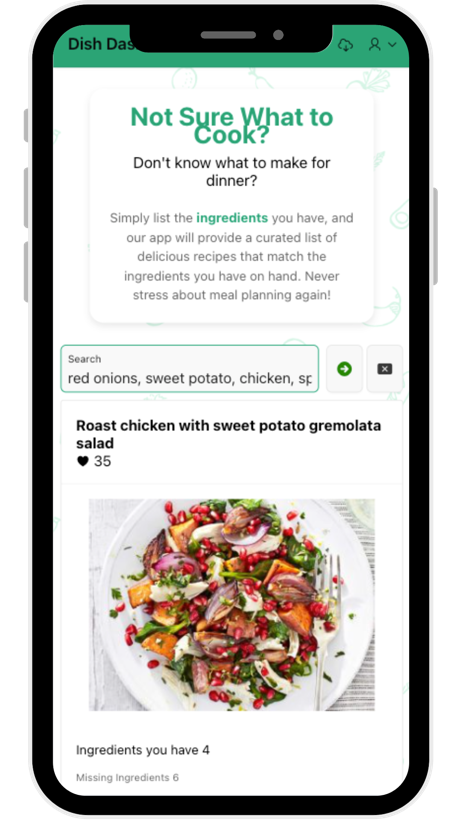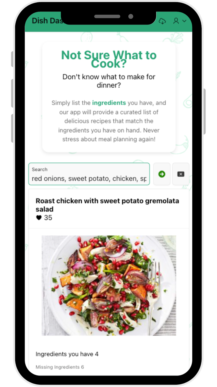 By using Dish-Dash, you're not just saving money; you’re also playing a part in reducing food waste and helping the environment. Whether you’re a seasoned cook or just looking to get creative with what you’ve got, our app is designed to make cooking easier, more fun, and more sustainable.